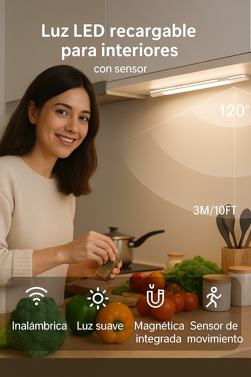 💡Con la Luz LED Recargable con Sensor de Movimiento tendrás iluminación instantánea donde lo necesites, sin enchufes ni pilas desechables.